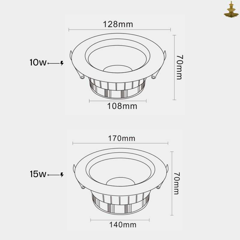 Crafted from durable aluminum die-casting , these downlights use advanced EPISTAR COB LUMILUX chips with a high brightness of 90lm/W and excellent color accuracy ( CRI > Ra80 ). Powered by a reliable LIFUD isolated driver , they deliver stable performance with PF > 0.9 , operating on AC85–265V / 50–60Hz .