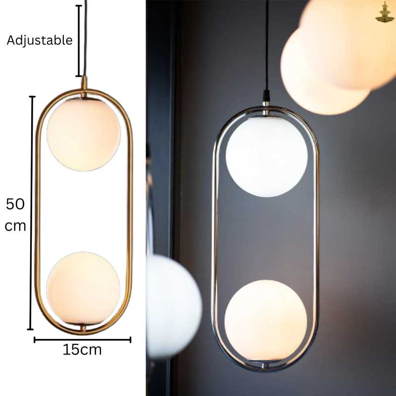 Enhance your interior with this graceful dual celestial pendant lamp, featuring two opal glass spheres in a sleek 50cm vertical design for a soft, balanced glow.