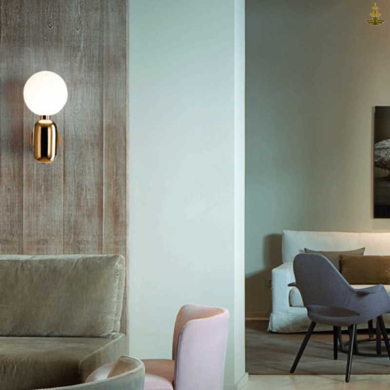Add a stylish touch to your space with this sleek sphere wall light, available in gold, black, or silver finishes.